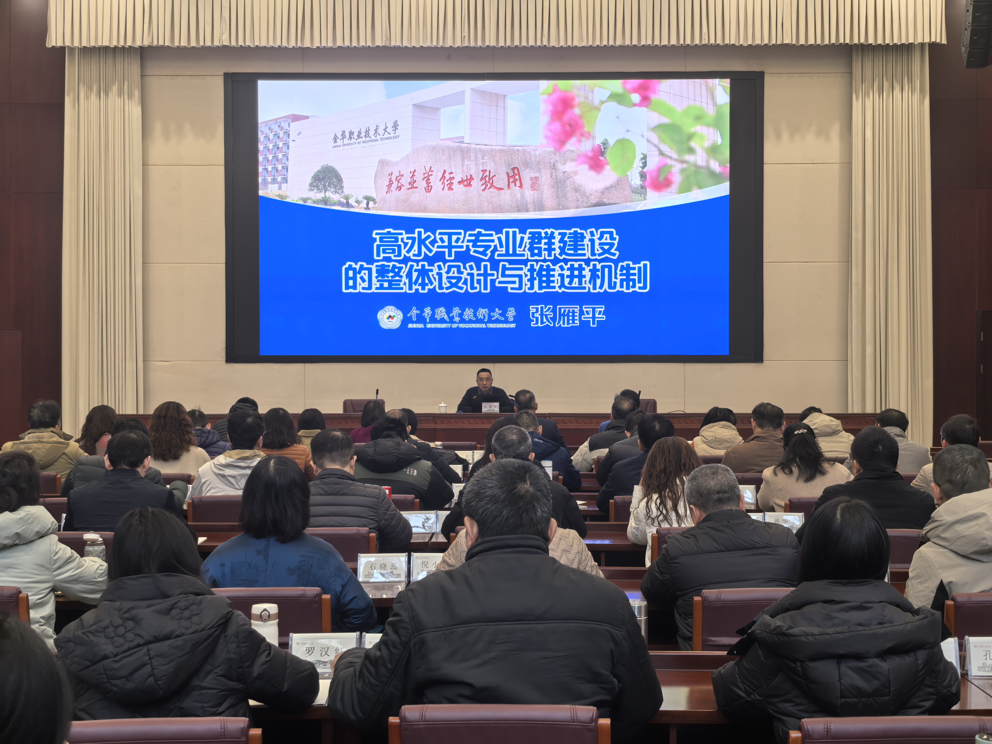 本次培训共安排3场专题报告。中共韶关市委党校生态文明教研部主任于忠龙从重大意义与历史方位、总体要求与战略部署、根本保证与党性锻炼三方面深入解读党的二十届四中全会精神和习近平总书记对广东系列重要讲话重要指示精神。清华大学教育技术研究所所长周潜以《系统推进职业教育数智化转型》为题,围绕职业教育数字化的背景、数智化现状分析以及数智化转型的对策三个方面进行解读。金华职业技术大学办公室主任、双高办主任张雁平以《高水平专业群建设的整体设计与推进机制》为题,从“新双高”改革导向和政策依据、高水平专业群建设的逻辑基础、整体设计、推进机制等方面进行深入剖析。