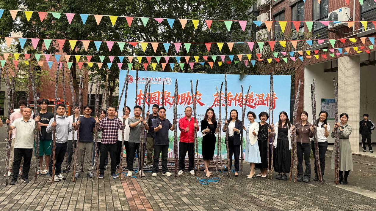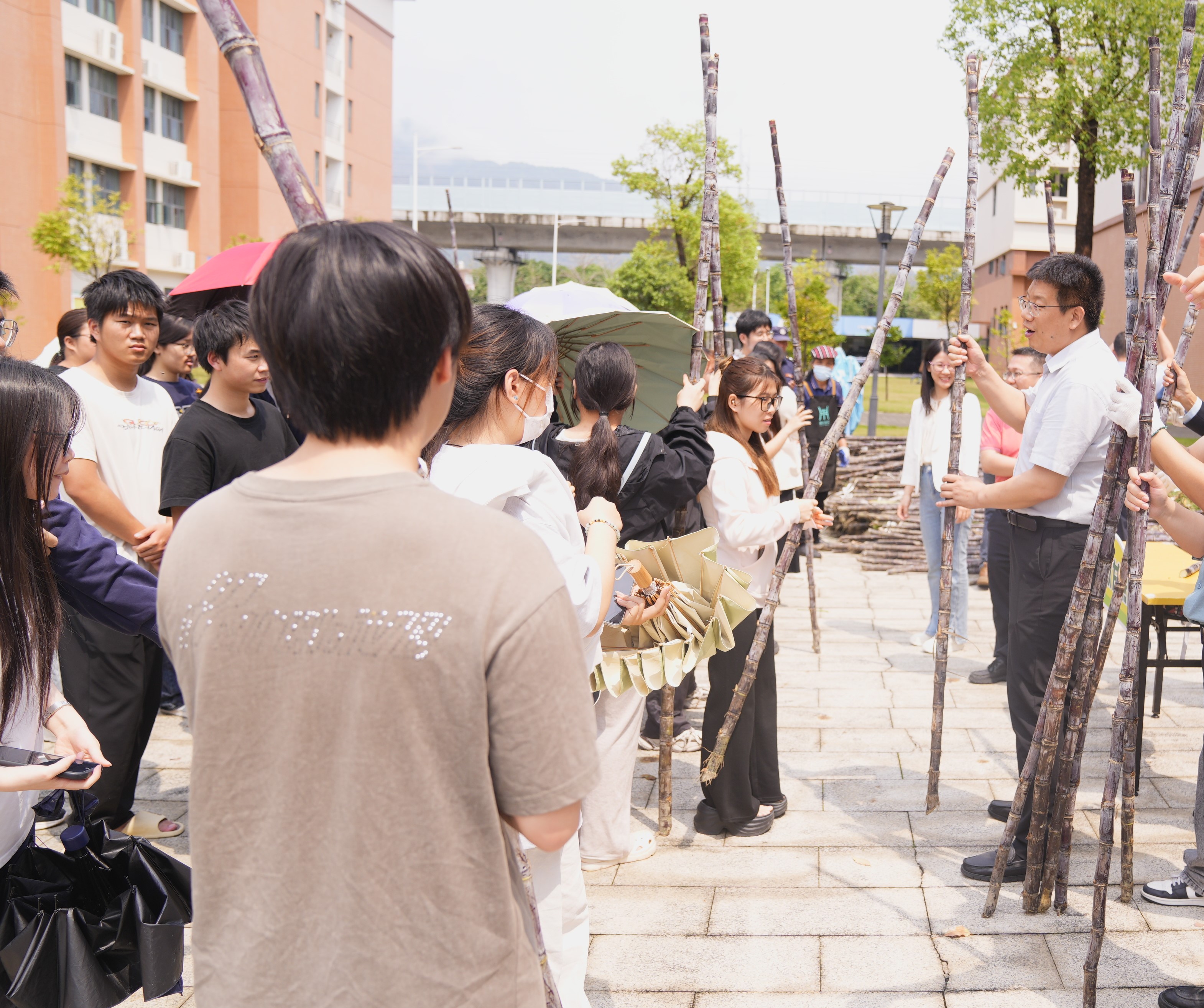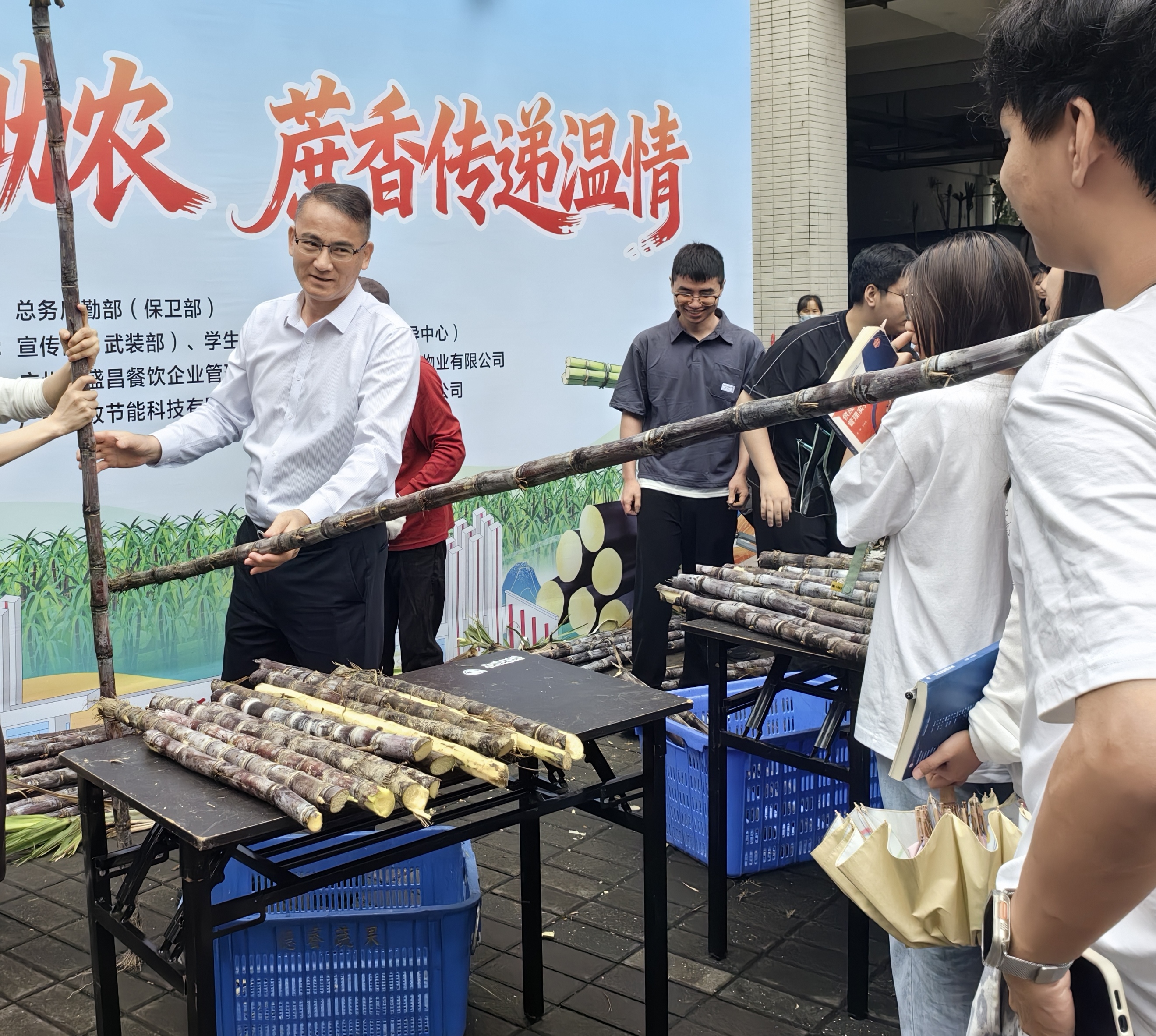 近日,学校组织总务后勤部(保卫部)、工会等部门,开展助农惠农、慰问师生活动,批量采购清远英德农户甘蔗,在省职教城、广州两校区同步免费发放给师生,既为蔗农拓宽销售渠道、缓解燃眉之急,也为全校师生送上了一份甜蜜的福利。学校党委书记叶忠明等校领导来到活动现场,为师生发放甘蔗,与师生共同分享这份来自田野的甜蜜,以实际行动彰显助农担当。