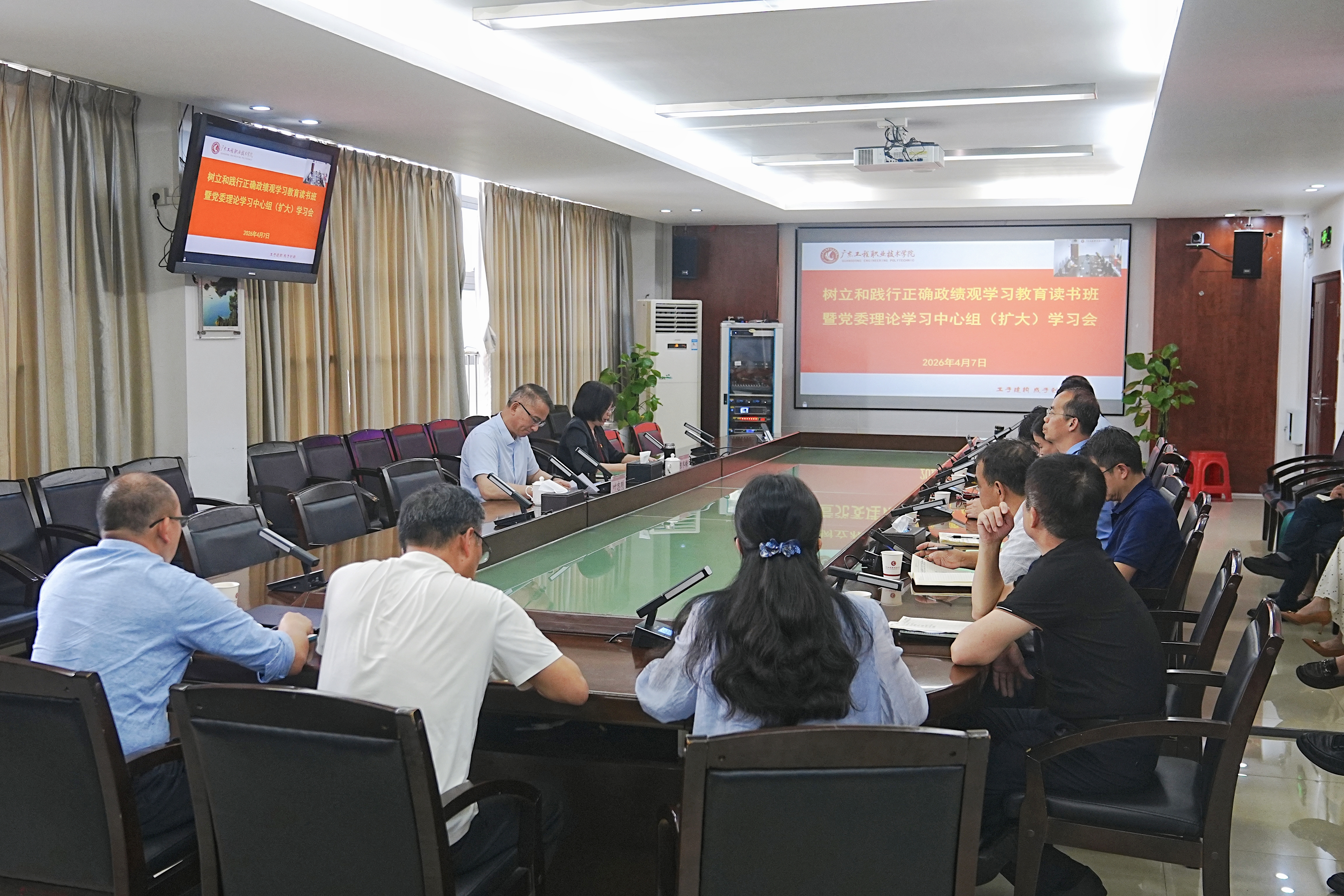 4月7日下午,学校召开树立和践行正确政绩观学习教育读书班暨党委理论学习中心组(扩大)学习会,深入学习《中共中央关于制定国民经济和社会发展第十五个五年规划的建议》,学习习近平总书记在参加十四届全国人大四次会议江苏代表团审议时、在深入推进雄安新区高质量建设和发展座谈会上发表的重要讲话精神,以正确政绩观引领学校“十五五”新征程。学校党委书记叶忠明主持学习会,学校党委副书记陈冬梅进行领学,学工部部长吴华长,建筑工程学院院长王洪波作了学习发言。学校领导、中层正职干部参加了学习会。