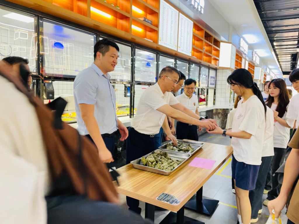 为弘扬传统文化、践行传统美德,让同学们感受端午节深厚的文化内涵,6月10日端午节当天,学校两校区同步开展“浓情端午,粽享未来”端午主题活动。学校党委书记叶忠明,党委副书记、校长李丽,党委委员、副校长揭英荣,两校区值班干部和留校学生一同参与活动,共度端午佳节。