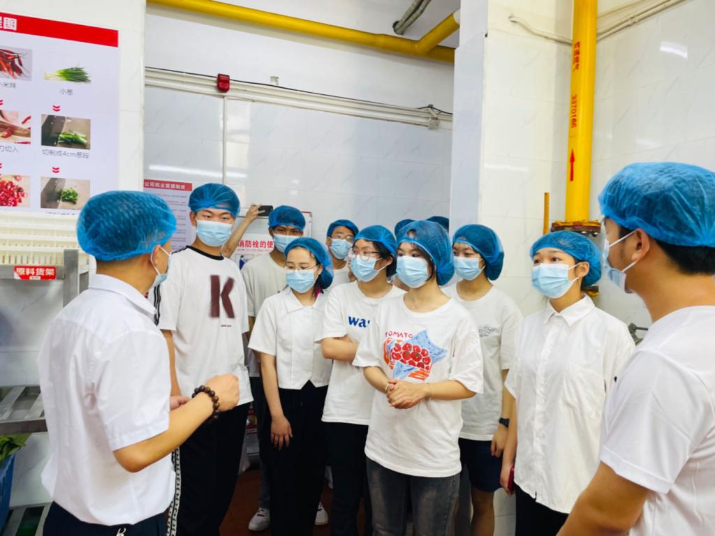 座谈会结束后,总务后勤部(保卫部)老师带领同学们参观体验了各食堂关于进菜、验收、粗加工、各类菜品分区切配等环节。通过近距离的观察,让同学们了解食堂的生产操作流程,体验到食堂工作的严谨和辛苦,切身感受到学校对食堂工作的重视和保障,更加崇尚劳动、尊重劳动、热爱劳动。