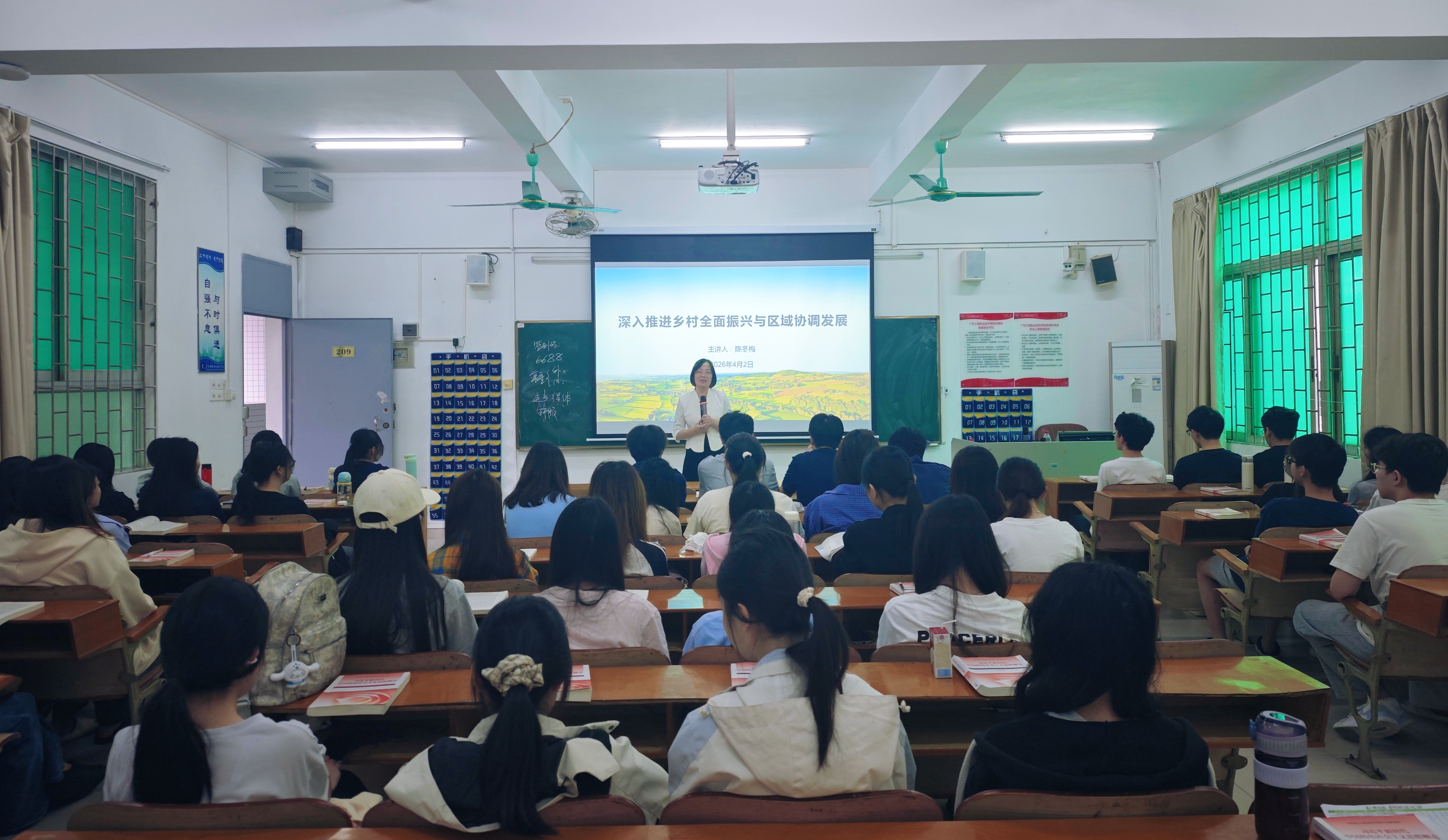 4月2日上午,学校党委副书记陈冬梅以“深入推进乡村全面振兴与区域协调发展”为题,为2024级大数据技术B班的同学讲授了“思政第一课”。陈冬梅副书记紧扣“推进乡村全面振兴的重要意义”与“在乡村全面振兴中奋发有为”两个方面展开。她从新时代“三农”工作的战略定位出发,深入阐释了乡村振兴战略的意义和实施路径,特别强调了工作中所凸显的领导干部推动重大战略落地落实的政治担当与专业水准。整堂课既有政策理论的深入解读,又有结合广东地域特色与学校学生实际的鲜活案例;既有现身说法的经验分享,又有可操作的方法指导。同学们表示,经过这堂课的学习,不仅深化了对乡村振兴国家战略的理解,也激发了投身乡村全面振兴的行动自觉。