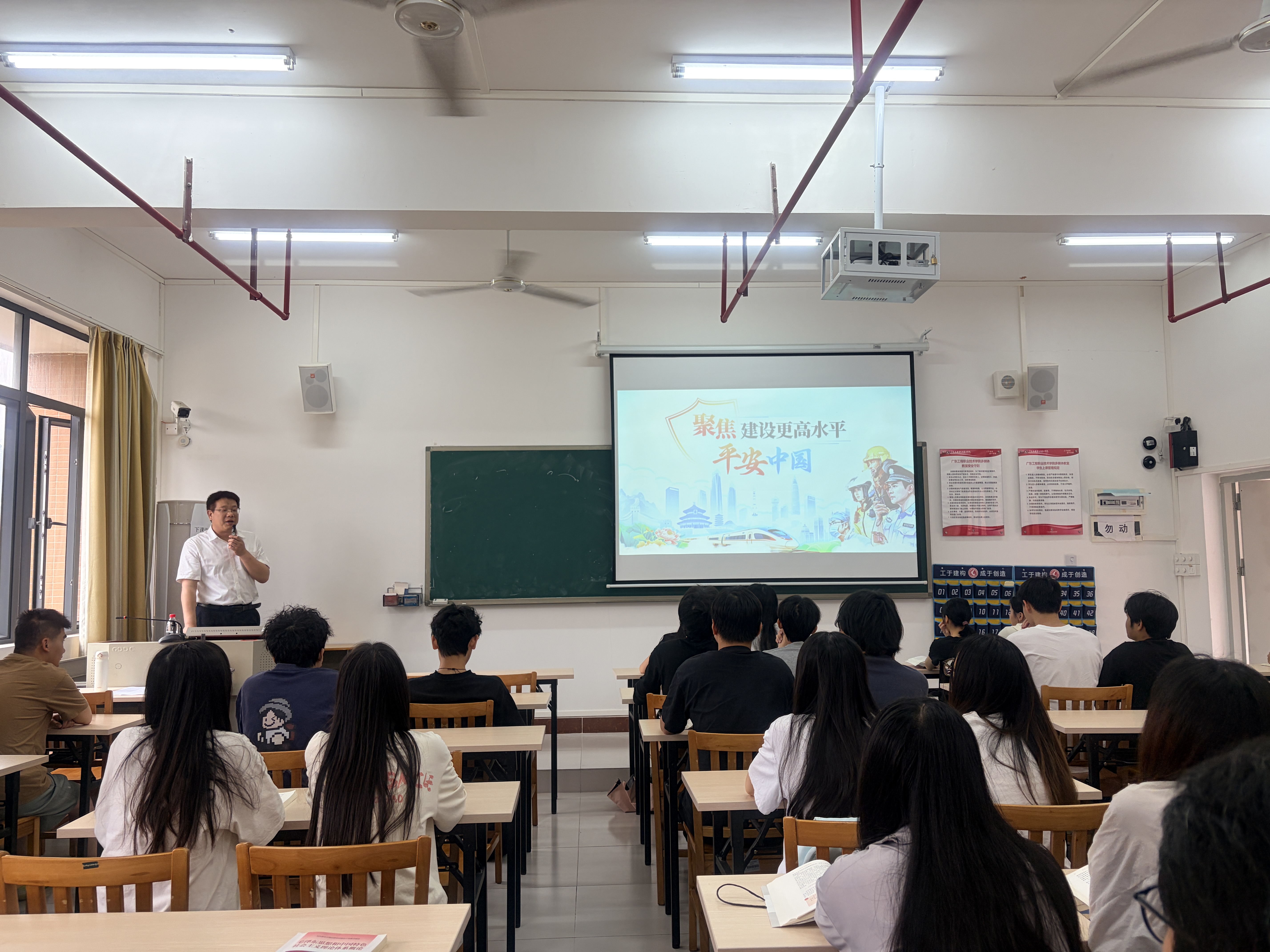 3月27日下午,学校党委委员、张永强副校长以“聚焦建设更高水平平安中国”为主题,为2024级建筑设计B班的学生讲授了“思政第一课”。张永强副校长从民之所盼为切入点,充分结合现实案例与权威数据,深入浅出地进行了理论剖析。他强调,我国是世界上最安全的国家之一,但安全总是相对的而不是绝对的。当前,我国发展环境面临深刻复杂变化,我们要坚定不移贯彻总体国家安全观,走中国特色社会主义社会治理之路;我们要居安思危,增强忧患意识。他寄语同学们在深入推进更高水平平安中国建设中展现新担当新作为。同学们课后纷纷表示,通过学习深刻意识到建设更高水平平安中国的重要性。
