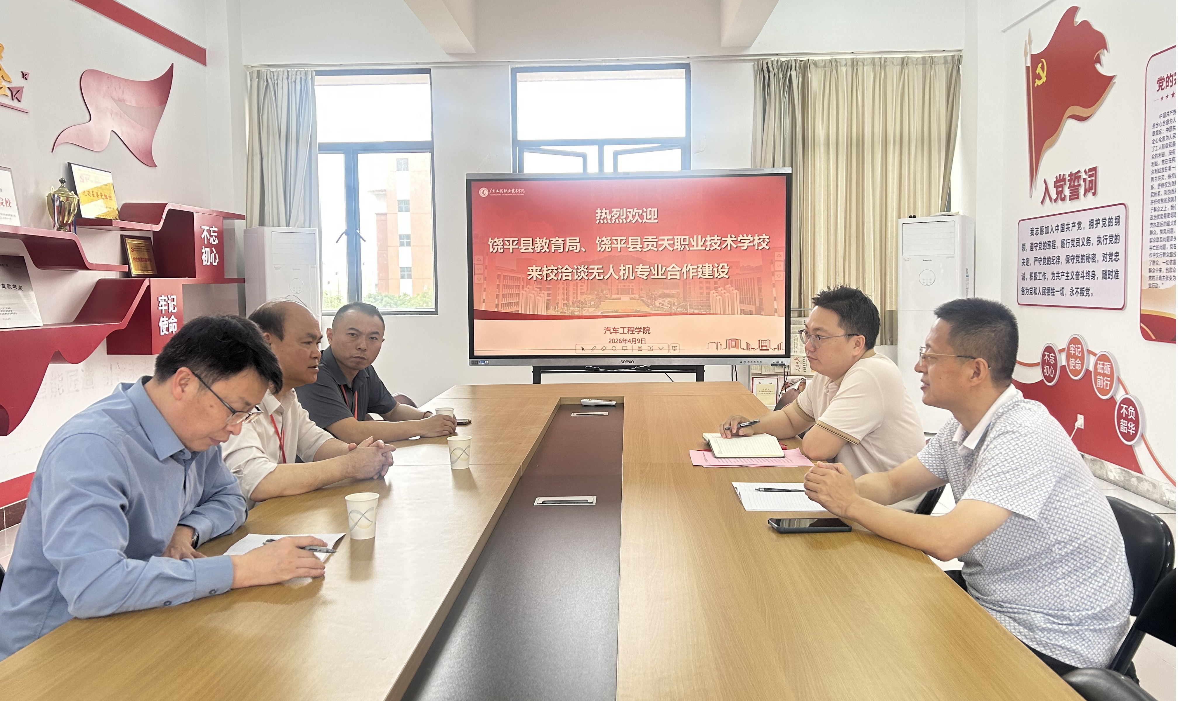 为深入推进广东省“双百行动”,深化县域职业教育与高职专业教育协同发展,4月9日,饶平县教育局副局长林岳梓、饶平县贡天职业技术学校书记欧泽旺来我校进行交流。我院汽车工程学院副院长吕文献、办公室主任许喜斌、驻县干部黎迪斯出席座谈。