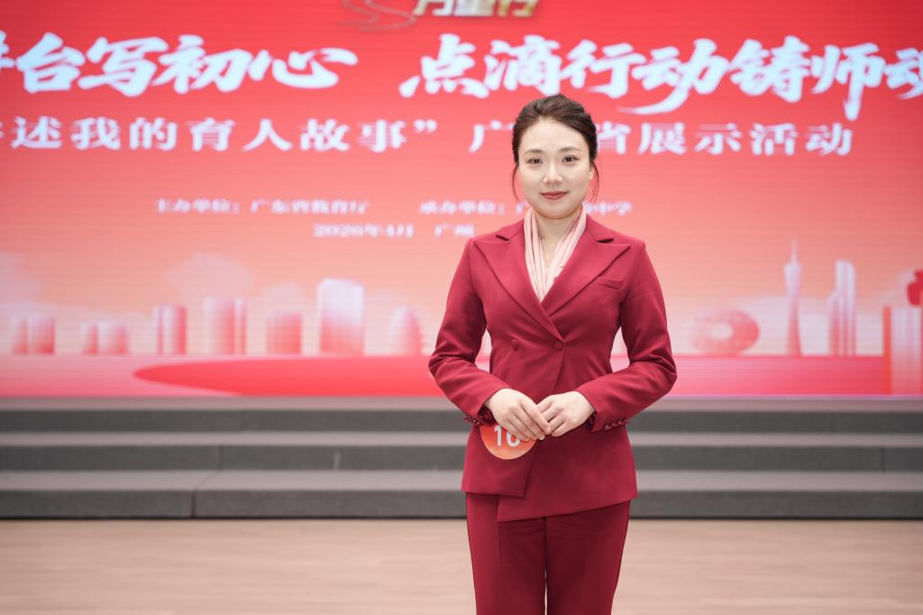 4月14日,由广东省教育厅主办的2026年“讲述我的育人故事”现场展示活动在广东实验中学举行。本次活动以“三尺讲台写初心,点滴行动铸师魂”为主题,汇聚全省一线优秀教师代表同台讲述立德树人故事,旨在推动教育家精神从“知”向“行”转化。省教育厅二级巡视员方树生、广东实验中学党委书记全汉炎出席活动并致辞,省教育厅相关处室负责人及评审专家、师生代表等500余人参加活动。我校文化旅游学院李长虹老师从全省各大高校、省属中小学及地市推荐的139名参评教师中脱颖而出,成为最终登台展示的18位优秀教师之一。她以“让爱的守护点亮育人初心”为题精彩亮相,赢得了现场评委与观众的高度认可。