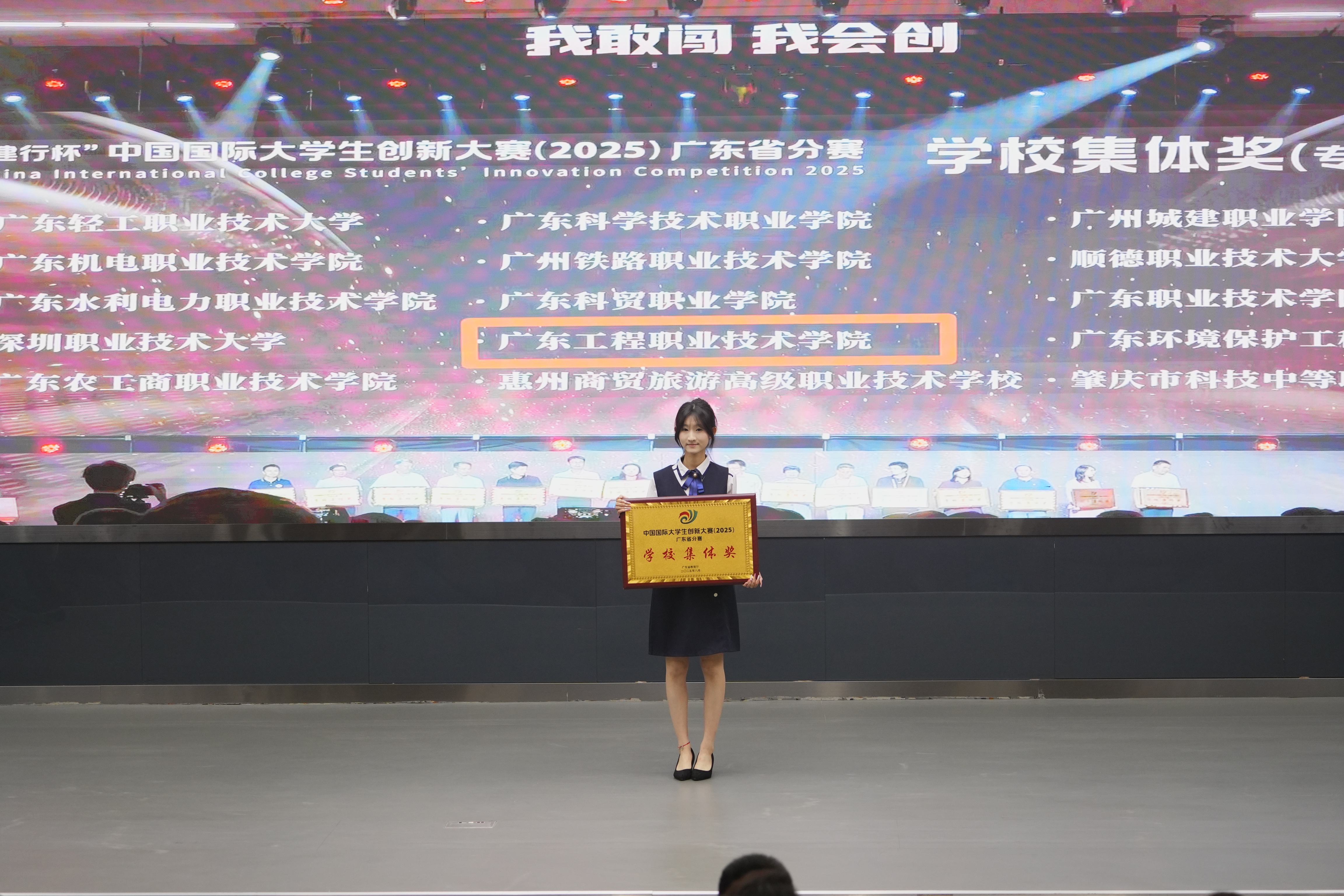 在国赛层面,《蟹润农科——国产软壳蟹产业AI智养领跑者》项目团队荣获中国国际大学生创新大赛(2025)全国总决赛铜奖。在省赛层面,《眸视智训——高精度3D视觉微刀具静态检测专家》等6个项目团队分获省赛银奖和铜奖。学校同时荣获广东省分赛学校集体奖。