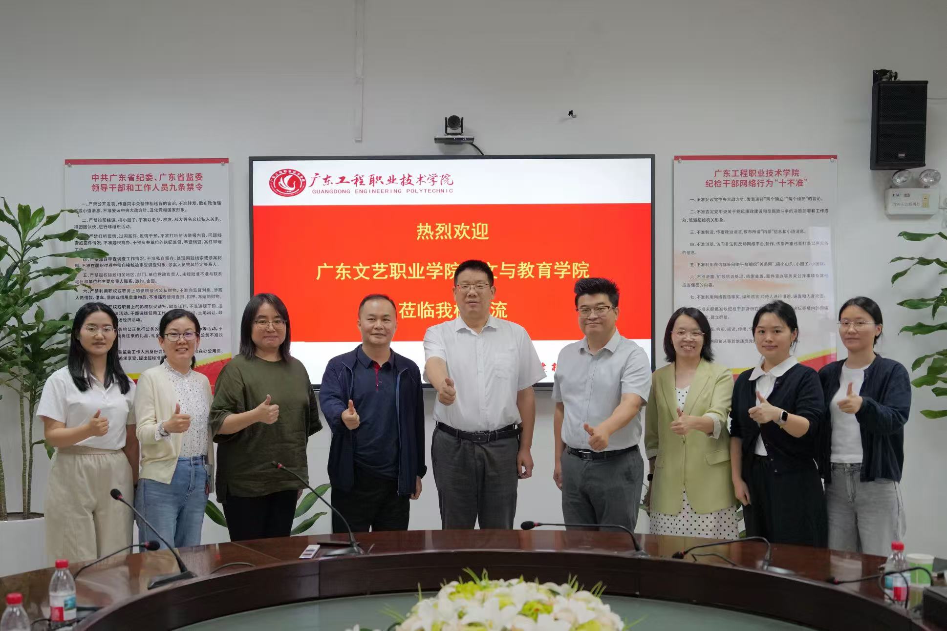 2026年4月24日,广东文艺职业学院人文与教育学院党总支书记田文、副院长王红丽一行访问我校,学校党委委员、副校长张永强接见了文艺职院一行,国际教育学院全体人员参加会议。