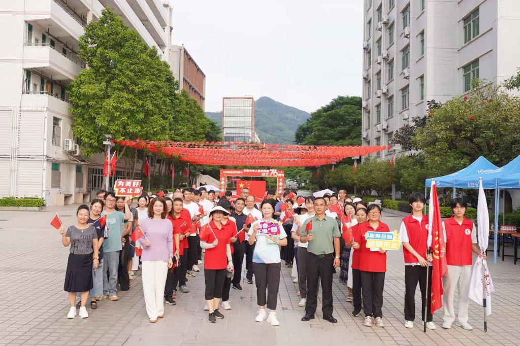 随着方燕主席宣布出发号令,健步走活动正式启动。教职工们手持五星红旗,精神抖擞、步伐矫健。秋阳和煦,国旗飘扬,欢声笑语回荡在校园的每一个角落,洋溢着喜庆祥和的节日氛围。