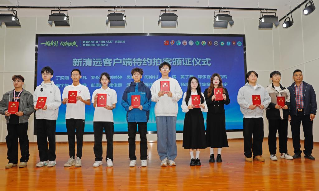 现场,来自各高校的20名优秀学生正式受聘为新清远客户端首批“特约拍客”,他们将用镜头记录校园生活、传播清远故事。来自多所高校的负责人及拍客代表分享了共建经验与创作感悟,展现青春视角下的校园风采与城市活力。