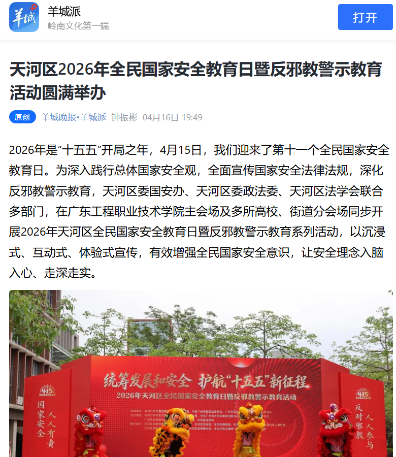 【羊城晚报】天河区2026年全民国家安全教育日暨反邪教警示教育活动圆满举办