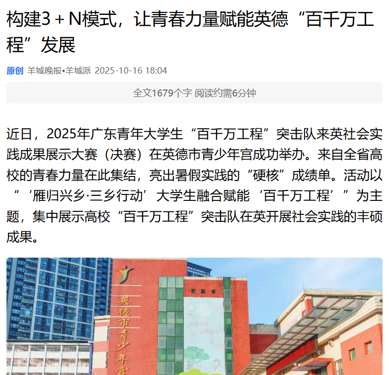 【羊城派】构建3+N模式,让青春力量赋能英德“百千万工程”发展
