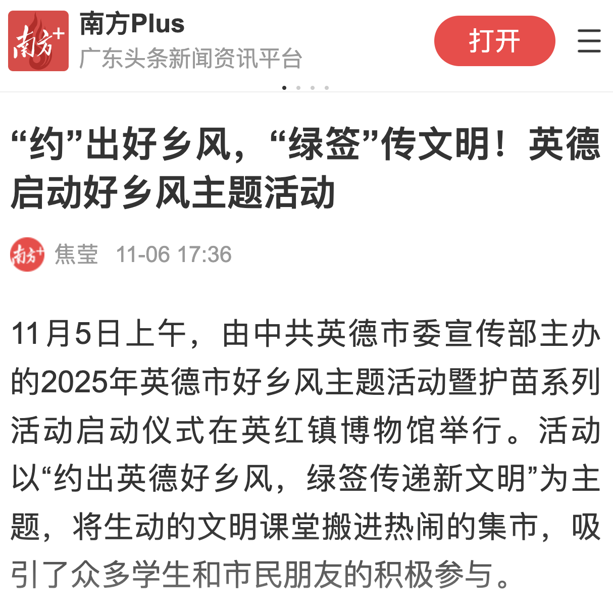 【南方日报】“约”出好乡风,“绿签”传文明!英德启动好乡风主题活动